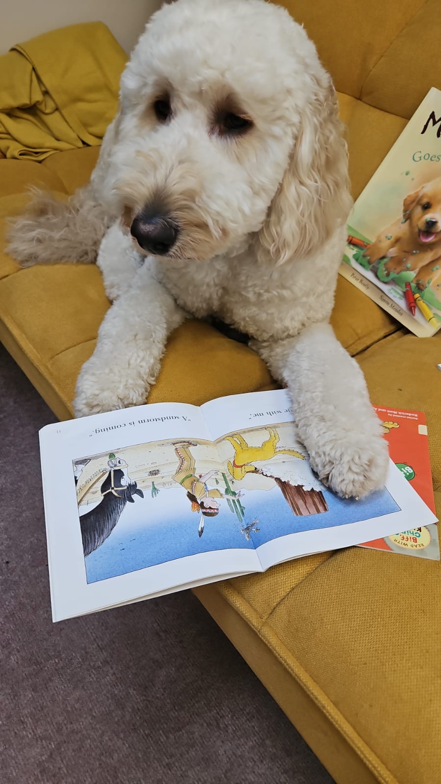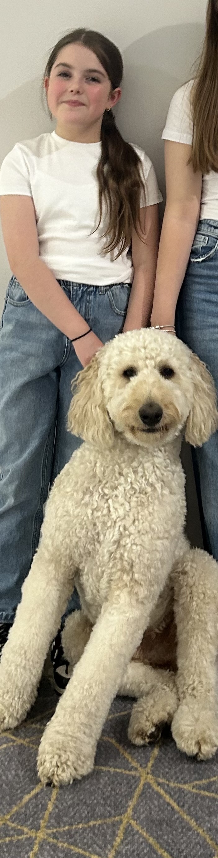 Póga comes from ADNI, where he has had lots of special training before joining our school. From puppyhood Póga has learned how to be calm, gentle and friendly in busy places. He has practised listening to commands, meeting lots of new people, and visiting different environments so he is confident wherever he goes. All this training has helped Póga become the wonderful therapy dog he is today - ready to bring comfort, happiness and support to the Knockavoe family.